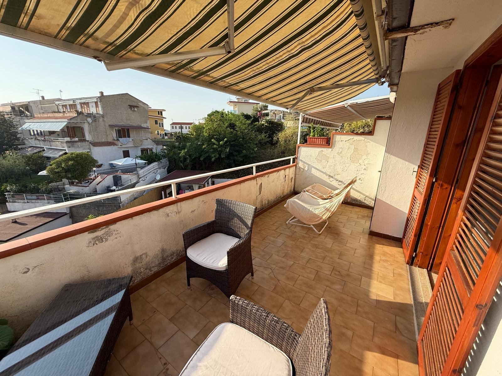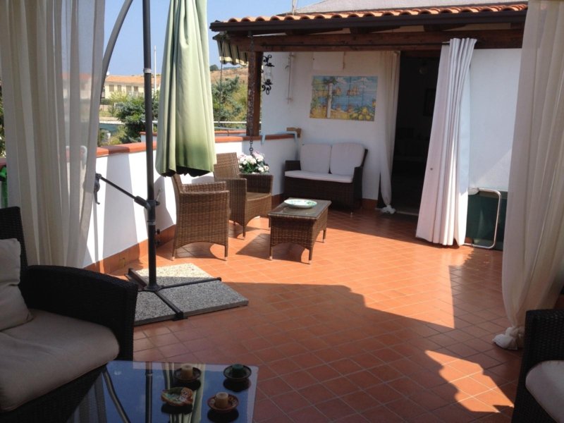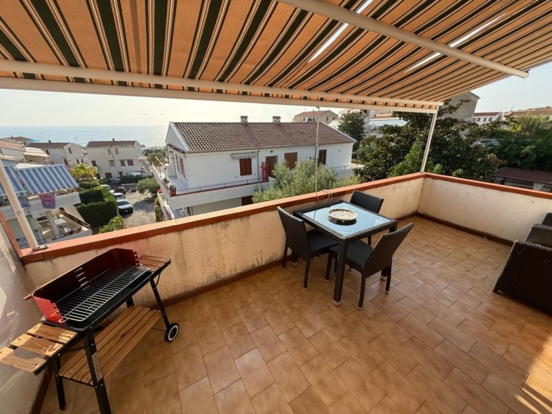 The terrace is adorned with handcrafted paintings on Vietri ceramics, creating a unique and evocative atmosphere. Each apartment comes with a shared parking space, ensuring convenience and security. With 90 m² of living space and 75 m² of floor space, this solution is perfect for those who want to live in a quiet setting without sacrificing the convenience of services and the absolute beauty of the Calabrian landscape! Don’t miss the opportunity to purchase this real estate gem!