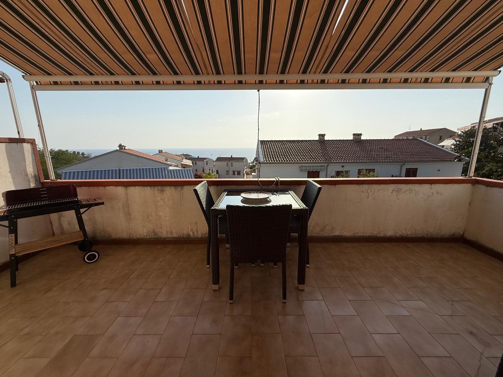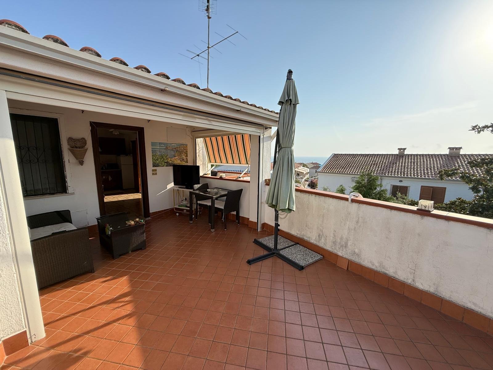 The property consists of two units, meticulously designed and tastefully furnished. The first apartment features a cozy living room with kitchen and a small patio that can be completely closed off with sliding windows, allowing the outdoor space to be used even in the winter months. It also includes two bedrooms and a bathroom. The living room/kitchen opens onto a small terrace with sea views. The second apartment, equally charming, features a bright living room, a small terrace with sea views, two bedrooms, and a bathroom. Both apartments boast access to a large shared terrace, perfect for al fresco dining with friends and family, and also equipped with an outdoor shower.
